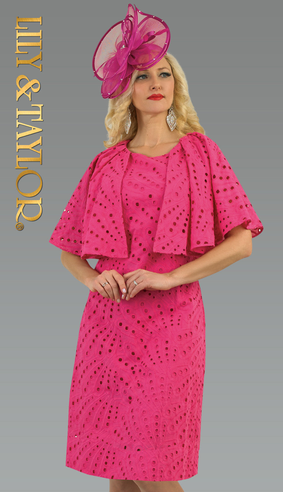 The Lily And Taylor 4993-FCH is the perfect dress for those special occasions where you want to make a statement. This exquisite ensemble combines elegance and style with its vibrant pink color that is sure to turn heads. The dress features an intricate design with delicate cut-out patterns, adding a unique touch that sets it apart from typical dresses.