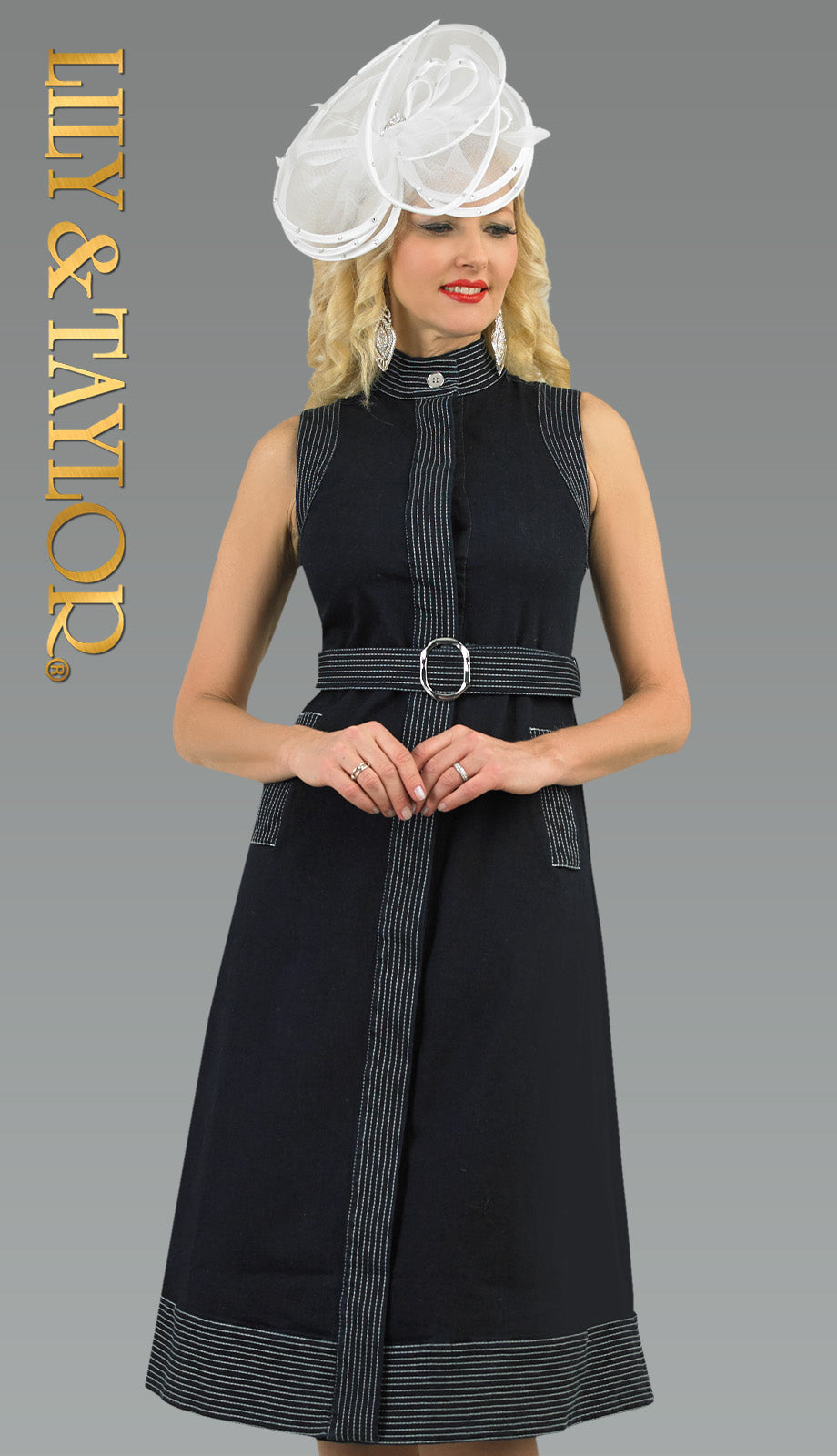 This dress stands out with its stylish contrast stitching, adding a touch of refinement to your outfit. Whether you are attending a formal event, a brunch with friends, or a day at the office, the Lily and Taylor 5027-DNV transitions seamlessly across different environments.