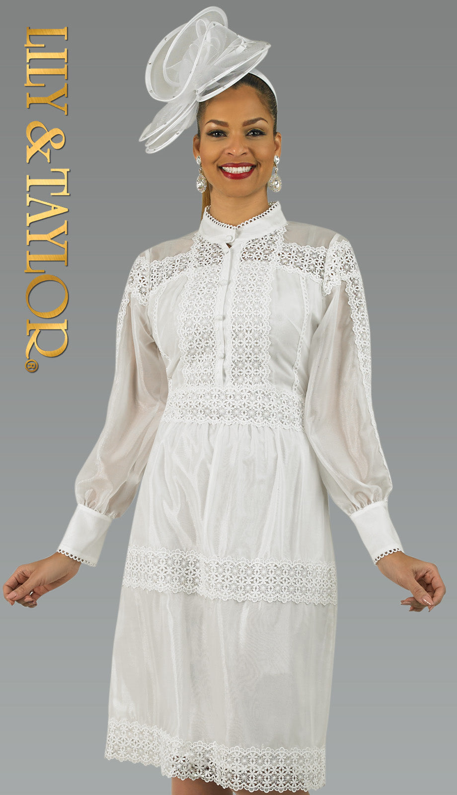 Crafted from high-quality materials, this dress not only looks beautiful but also ensures durability and a comfortable fit. The button closure at the front adds functionality without compromising style. Whether you are dressing up for a church event or a family gathering, the Lily And Taylor 5037-WHT is sure to make you feel confident and stylish.