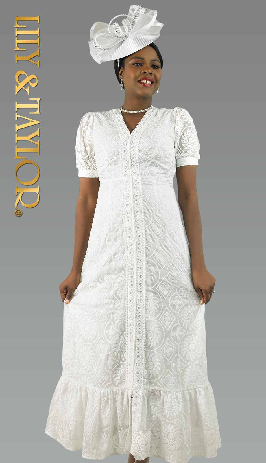The Lily And Taylor 5040-WHT dress is a stunning choice for special occasions, offering an elegant blend of traditional design and modern style. Made from high-quality, breathable fabric, this dress ensures comfort without sacrificing sophistication. The classic white color is perfect for weddings, church events, or formal gatherings, making it a versatile addition to any wardrobe.