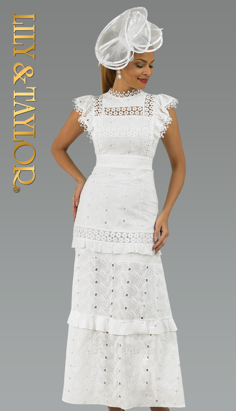 The timeless white color makes this piece versatile and easy to accessorize. Pair it with your favorite hat or statement jewelry for a polished finish. Available in a range of sizes, the Lily And Taylor 5041-WHT is designed to flatter various body types. Elevate your wardrobe with this luxurious piece that combines tradition with modern flair.