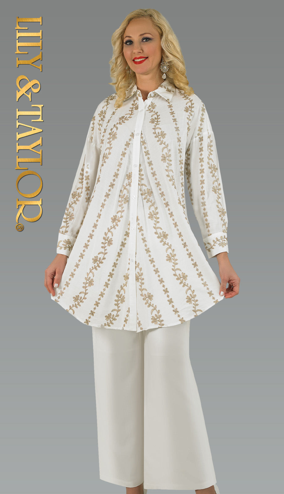 The Lily And Taylor 5054-WWG is a stunning addition to any wardrobe, designed for elegance and comfort. This beautifully crafted garment features a soft, flowing silhouette that flatters all body types. The intricate floral embroidery adds a touch of sophistication, while the lightweight fabric ensures you'll remain comfortable all day long.