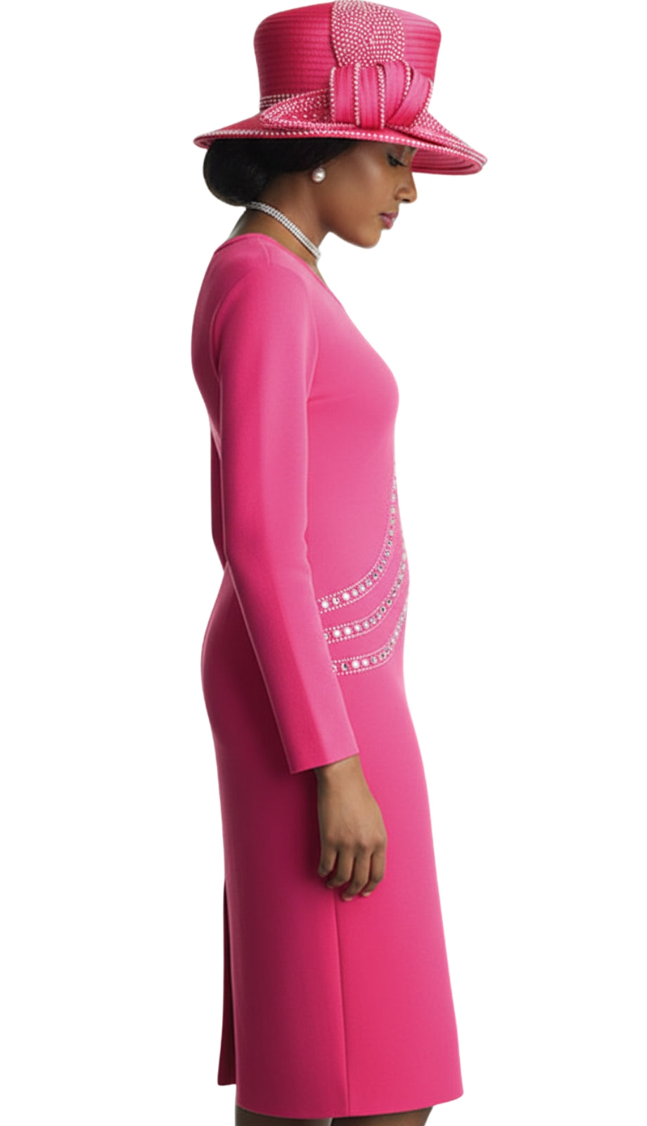 The Lily and Taylor 606-FU Knit Church Dress is the epitome of sophistication and poise, designed for those who appreciate the fusion of elegance and comfort in their formal attire. This beautiful dress boasts a vibrant fuchsia tone that commands attention while maintaining a form of timeless grace suitable for various special events and religious services.