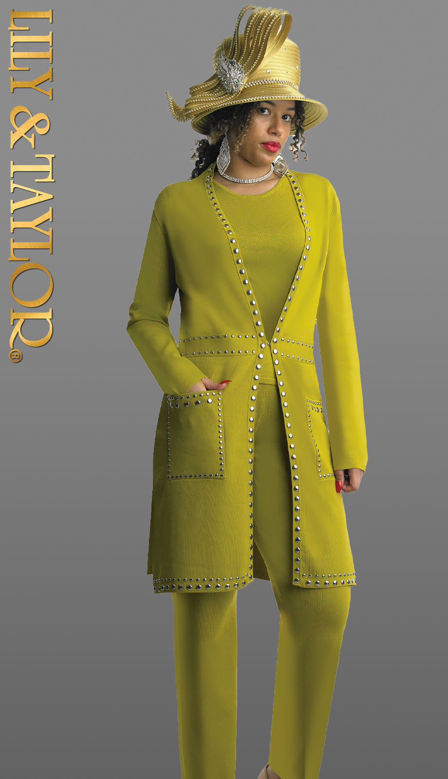 One of the standout features of the 783-KIWI-QS is its chic stud detailing. The studs line the edges of the jacket and pockets, adding a contemporary flair that elevates the overall design. This beautiful touch not only makes the suit visually appealing but also highlights the craftsmanship that Lily And Taylor is known for.