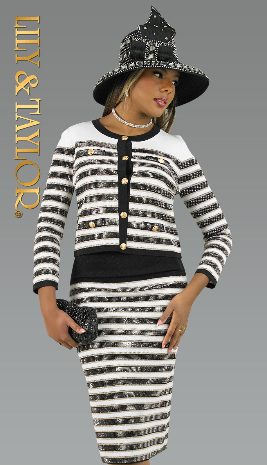 The Lily And Taylor 839-BLK is a perfect blend of class and modern design, ideal for those who wish to stand out at any event. The smart black and white stripes create a striking visual appeal, making this outfit suitable for various occasions, from formal gatherings to church services.