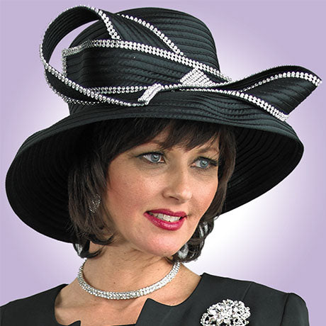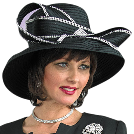 Attention to detail is evident in the exquisite crystal embellishments that encircle the hat. These sparkling accents catch the light and draw the eye, adding a luxurious touch without being overwhelming. The hat's inner band is designed for comfort, ensuring a comfortable fit that stays securely in place throughout your wear. Whether you're attending a church service, a wedding, or any other formal occasion, the Lily And Taylor H1009-BLK Church Hat is the perfect finishing touch to your ensemble, providing an air of grace and poise.