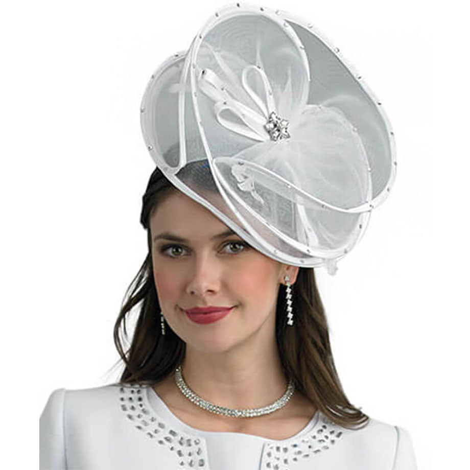 Introducing the Lily And Taylor H121-WHT Church Hat, a stunning accessory that exudes sophistication and grace. This exquisite hat has been crafted with attention to detail, ensuring a look thatâs both classic and captivating. The hat features a beautiful arrangement of sheer ribbons and satin elements, combining different textures to create a visually appealing design.