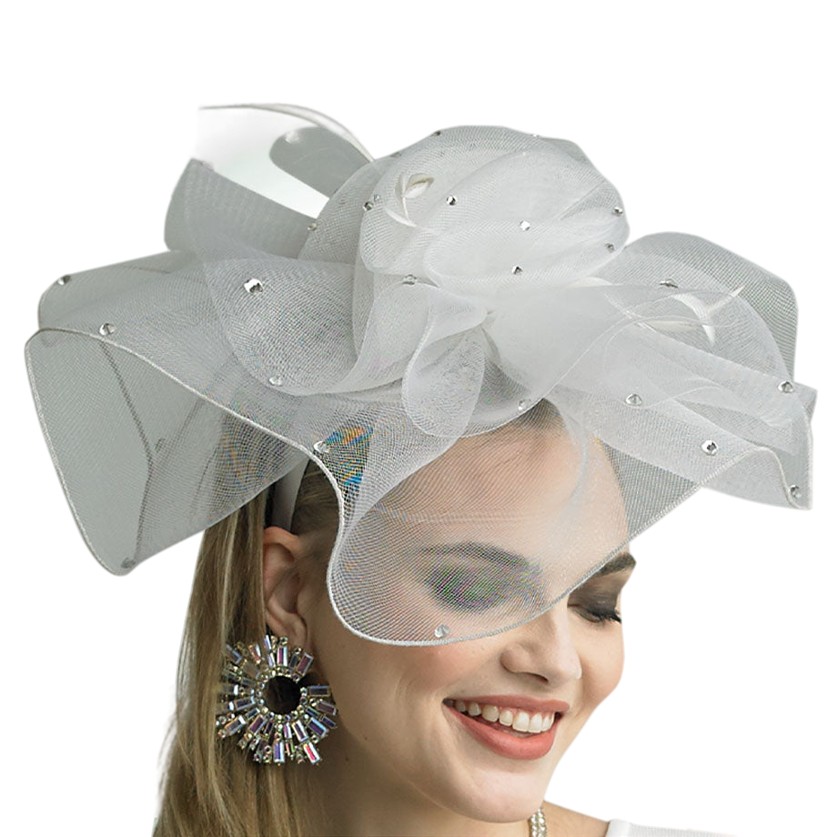 Introducing the Lily and Taylor H130-WHT Fascinator, a statement piece that exudes sophistication and grace. Crafted with care, this white fascinator boasts an enchanting mesh design that cascades in elegant waves, softly framing the face. Each curve is embellished with carefully placed rhinestone accents that catch the light with every movement, adding just the right amount of sparkle to your ensemble.