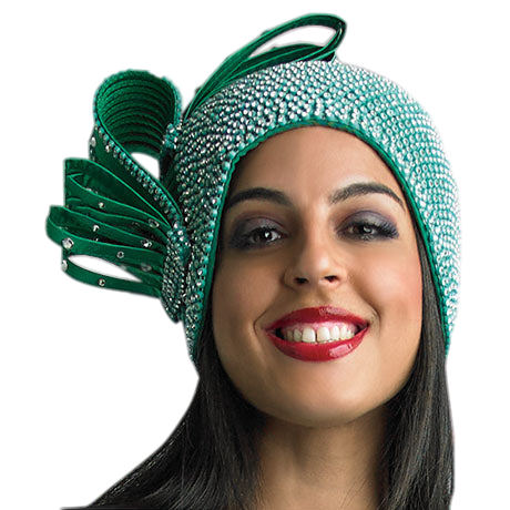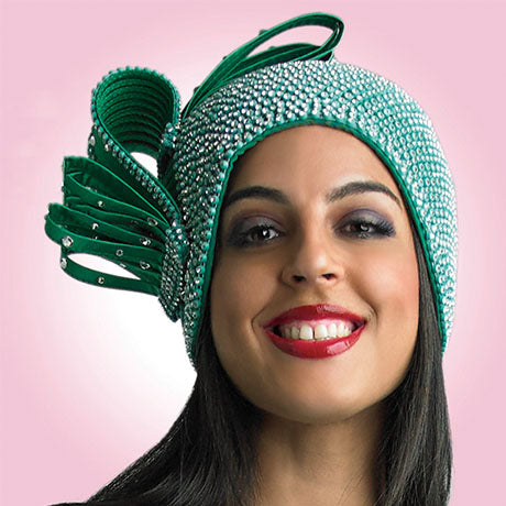 Introducing the Lily And Taylor H416-EMR Church Hat, a stunning accessory designed to complete your ensemble with a touch of elegance and a bold statement. This hat embodies sophistication with its rich emerald hue and the scintillating sprinkle of sparkling adornments that capture the light and the attention of any room.