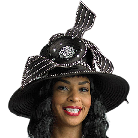 Crafted with attention to detail, the hat features a distinctive spiral ribbon design, ascending from the crown to create a visual statement. Each ribbon is meticulously accentuated with an array of shimmering rhinestones, catching the light and adding an air of luxury to the overall aesthetic.