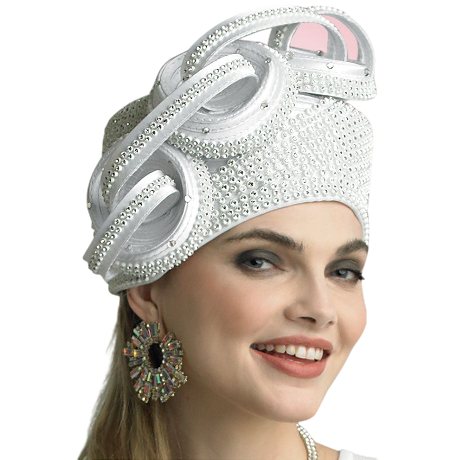 Design-wise, the hat boasts a captivating looped structure that is both modern and timeless. The loops create a mesmerizing sense of movement and depth, adding an avant-garde twist to traditional millinery. Despite its intricate appearance, the hat is designed for comfort. It rests securely on the head, offering a snug fit without compromising on style. Whether you're attending a wedding, religious service, or a high-tea, the Lily And Taylor Hat H145-WHT is the ideal finishing touch to your ensemble, designed not only to complement your look but to elevate it.