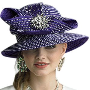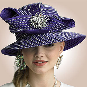 Introducing the Lily And Taylor Hat H310-PUR - a statement piece that combines traditional style with modern flair. This eye-catching accessory is the perfect accompaniment for any event where making an impression is key. The rich purple hue gives off an air of sophistication and luxury, while the gleaming rhinestone embellishments catch the light beautifully, providing a stunning sparkle that is sure to turn heads.