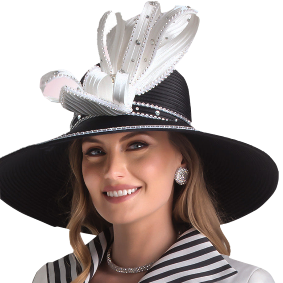 Introducing the Lily And Taylor Hat H683-BWI â where elegance meets timeless style. This exquisite headpiece boasts a unique two-tone aesthetic, harmoniously blending classic shades to elevate your ensemble for any prestigious event. Designed for those who appreciate the finer details, this hat is adorned with delicate feathers and glistening rhinestones, carefully positioned to catch the eye and light with equal grace.