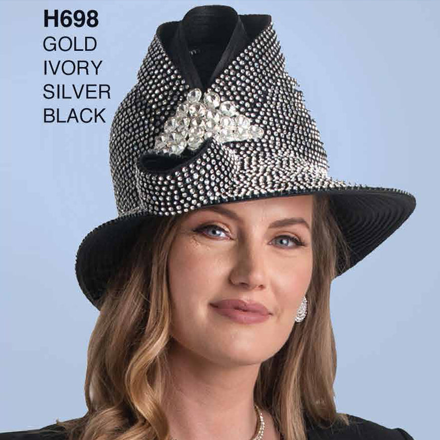Made from the finest materials, the H698-BLK model exudes luxury and premium quality. The stunning black shade offers versatile styling with various outfits while ensuring that the wearer stands out in any gathering. The sleek design is enhanced with intricate detailing and exquisite embellishments that catch the light and the eyes of onlookers. Despite its striking visual appeal, the hat remains tasteful and understated, a testament to the brand's expertise in creating accessories that command attention without overwhelming.