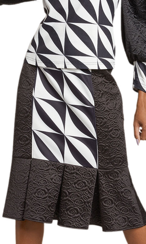 Introducing the Love The Queen 17397-S Church Skirt, a stunning piece that embodies sophistication with a modern twist. This elegant skirt is designed to create a powerful statement at any church event or special occasion. The skirt features bold monochrome geometric print panels that draw the eye and accentuate the figure beautifully. Between these striking elements, you'll find a luxurious textured fabric that adds depth and richness to the overall look.