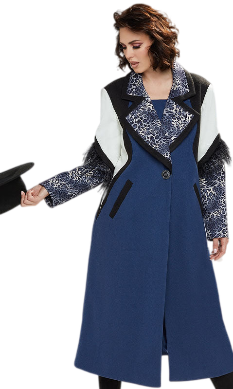 Introducing the Love The Queen 17426 Church Coat â a stunning testament to classic elegance infused with a modern twist. Our meticulously crafted coat showcases a distinctive blue hue complemented by an eye-catching color block pattern that exudes a timeless grace suitable for various formal occasions. The subtle incorporation of contemporary design elevates the traditional coat silhouette, creating a fashion-forward piece that remains sophisticated and respectful of church and event decorum.