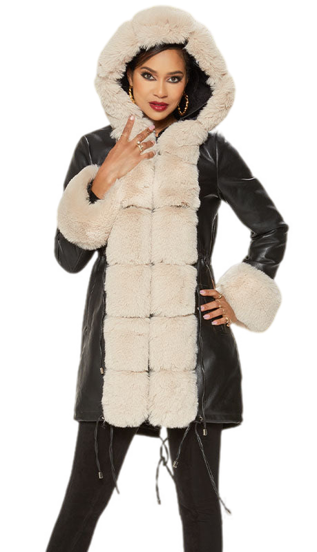 Introducing the exquisite Love the Queen 17479 Jacket, a masterpiece of design and warmth for the contemporary woman. This jacket is the epitome of elegance and functionality, combining faux fur and sleek leather for a distinguished look. Envelop yourself in the luxurious feel of the highest quality materials, designed to keep you cozy and stylish during the colder months.