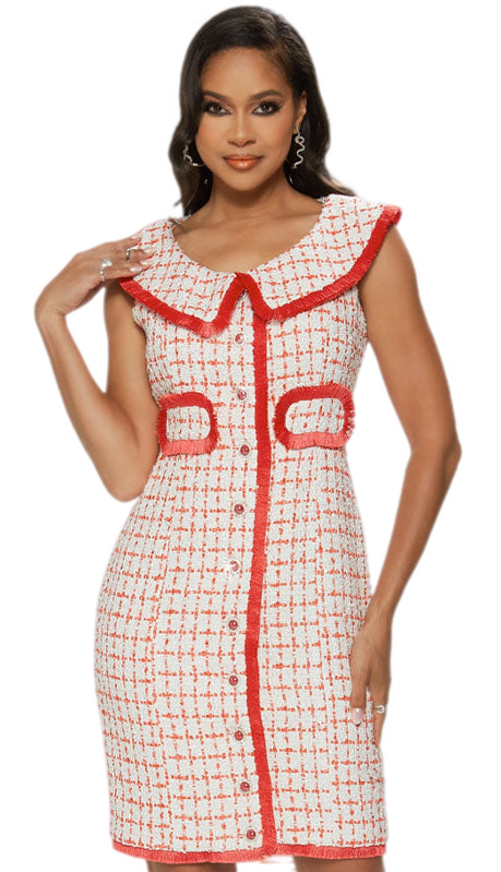 Introducing the Love the Queen 17482-D Dress, a garment that exemplifies sophistication and grace. This stunning dress is crafted from high-quality tweed material, providing a textured feel that adds depth to the overall design. Its sleeveless cut makes it a versatile addition to your wardrobe, allowing for layering options or wearing as-is for chic, warmer-weather ensemble.
