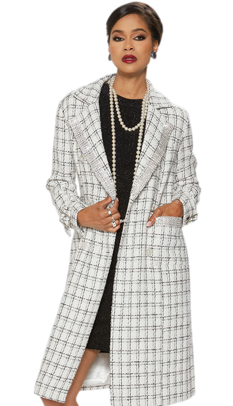 The design features a knee-length cut that offers both warmth and versatility. Whether paired with tailored trousers for an office-ready outfit or draped over a chic dress for evening events, this jacket is sure to turn heads. Its notched lapel adds a traditional touch of class, while the contrast trim side pockets combine functionality with a fashionable edge.