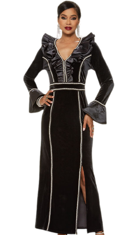 Introducing the exquisite Love the Queen 17487 Dress, a masterpiece of design that exudes elegance and sophistication. This stunning floor-length gown is a perfect choice for those special occasions where you want to make a memorable statement. Crafted from luxurious black velvet, the dress offers a soft texture and subtle sheen that catches the light beautifully.