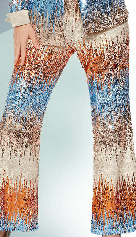 Introducing the exquisite Love the Queen 17498-Church Pants, a statement piece that embodies sophistication and grace. These pants are designed to make a bold impression at any formal occasion or church event, with a focus on both comfort and style. The eye-catching sequin embellishments cascade down the legs, creating a shimmering effect that exquisitely catches the light with every step.