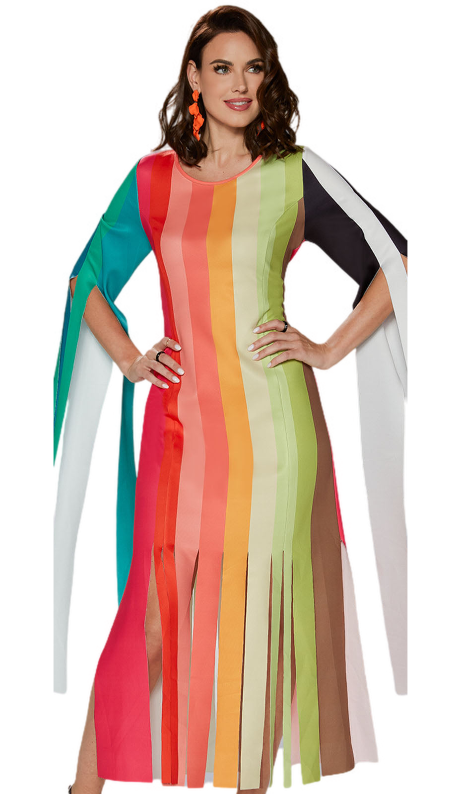 Introducing the Love the Queen 17522-MULTI Dress, a statement piece designed to captivate and charm at any event. The dress presents a brilliant canvas of multi-color stripes that exude confidence and creativity. It's a tribute to those who dare to stand out while maintaining an air of sophistication.
