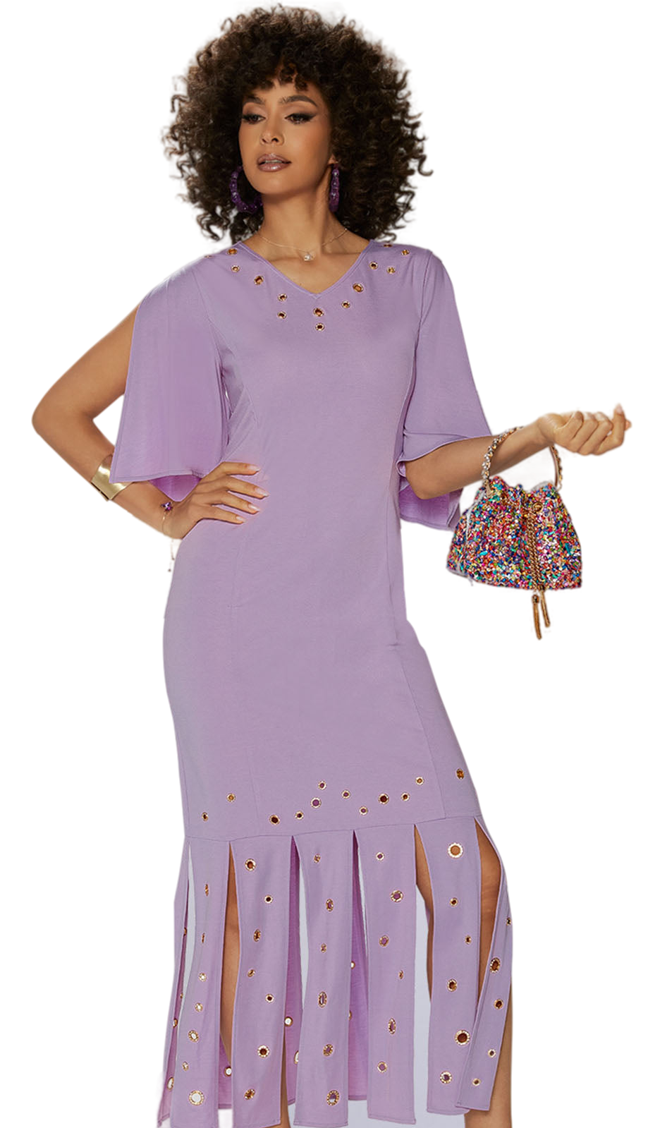 Introducing the Love the Queen 17537-LAV Dress, a masterpiece that exudes sophistication and style. Crafted with a keen eye for detail, this lavender midi dress is a testament to classic beauty fused with modern design. The flowing bell sleeves add a touch of romantic grace, dancing lightly with your every move. Effortlessly flattering, the silhouette of this dress embraces the contours of your figure, promising a look that is both elegant and alluring.