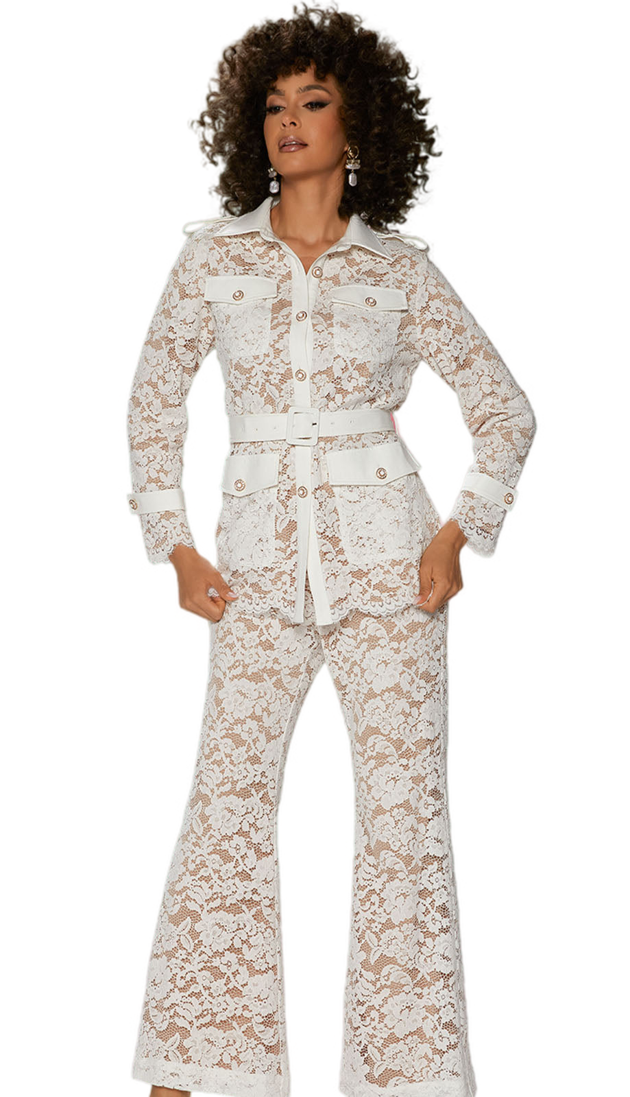 Introducing the Love the Queen 17540-SET, an exquisite ensemble that channels both classic elegance and modern fashion sensibilities. This two-piece set features a stunning lace overlay that exudes sophistication and style. The statement flared pants are tailored to create an elongated silhouette, perfect for those seeking to make a grand entrance.