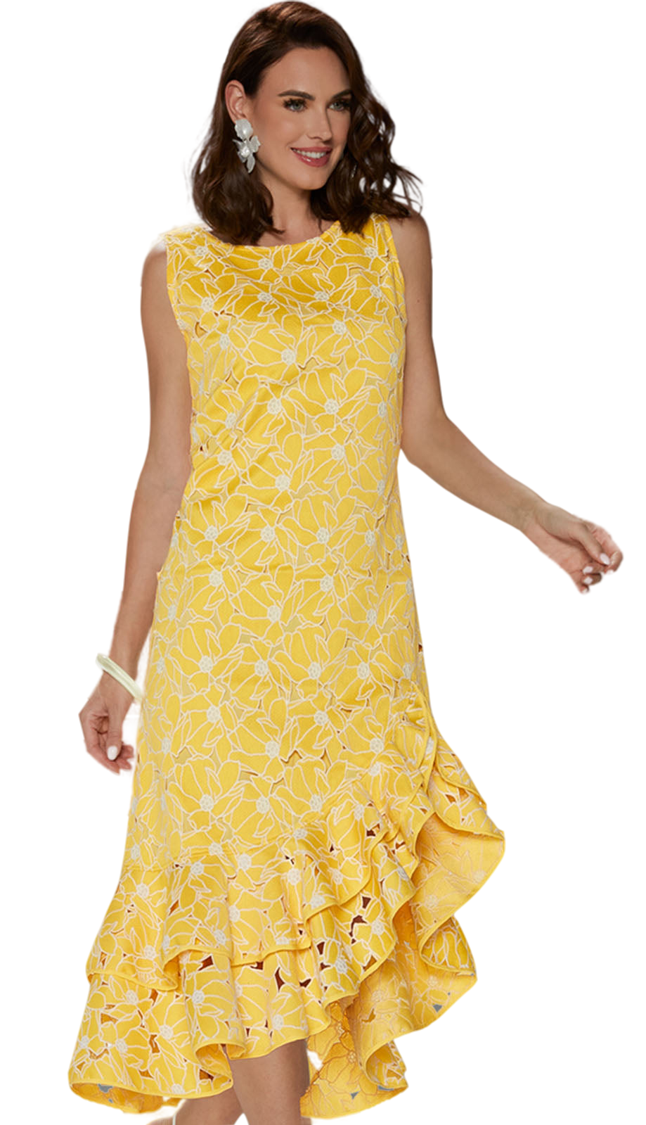 Introducing the Love the Queen 17562-YEL Dress, a stunning piece that captures the essence of spring and summer with its vivacious floral print and vibrant color. This beautiful dress is meticulously crafted to provide a flattering silhouette for any occasion. The airy and breathable fabric ensures you stay comfortable, whether you're attending an outdoor wedding or a casual garden party.