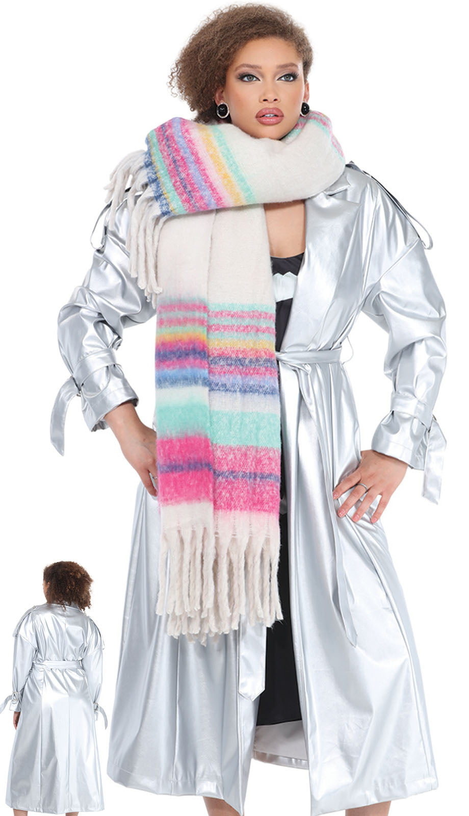 Introducing the Love the Queen 17578 Coat, a garment that masterfully combines sophistication with a modern twist. This stunning coat is designed for the fashion-conscious individuals who appreciate a mix of classic elegance and contemporary edge. Its eye-catching metallic finish is sure to turn heads and make a bold statement in any setting.
