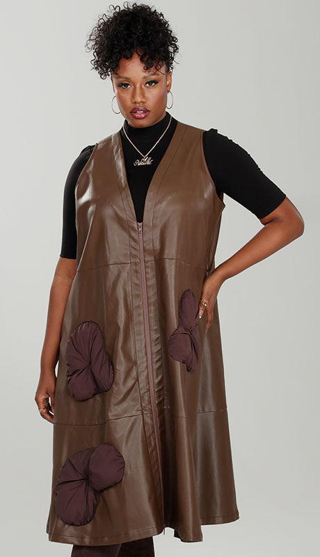 Introducing the Luxe Moda LM223 Church Vest Dress, a sophisticated addition to any elegant wardrobe. Crafted from luxurious faux leather, this dress boasts a buttery texture that drapes gracefully over the body. The sleeveless design makes it a versatile piece for various seasons, and the midi-length hem ensures it is appropriate for a multitude of events.