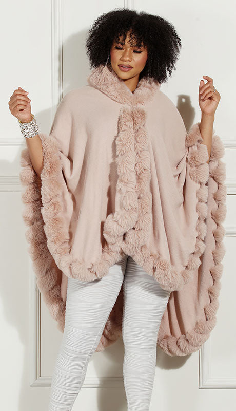 Introducing the Luxe Moda LM234 Cape, the ultimate blend of comfort and high-end fashion. This stylish cape is a must-have addition to your wardrobe, offering a chic solution to layering during the cooler seasons. Its sumptuous faux fur trim not only adds a touch of elegance but also provides extra warmth, enveloping you in a cozy embrace.
