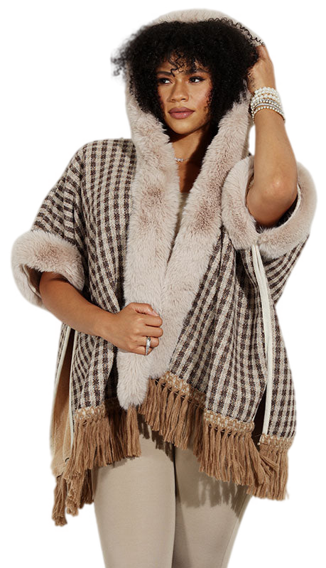 Introducing the Luxe Moda LM237 Cape, the epitome of style and sophistication for your wardrobe. This premium cape features a sumptuously plush-lined hood that evokes an air of luxury while offering practical warmth. The cape's exquisite woven fabric boasts a timeless striped pattern that exudes a classic charm, making it a versatile addition to your fashion collection. Its relaxed silhouette is designed to drape elegantly over the shoulders, offering both comfort and a flattering fit for a range of body types.