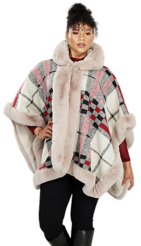 Introducing the Luxe Moda LM239 Cape, a statement piece that merges timeless elegance with contemporary style. This cape features a classic plaid pattern, crafted from a fabric that ensures both warmth and comfort during the colder months. Adorned with a luxuriously soft faux fur collar, it provides additional coziness and chic aesthetic appeal.