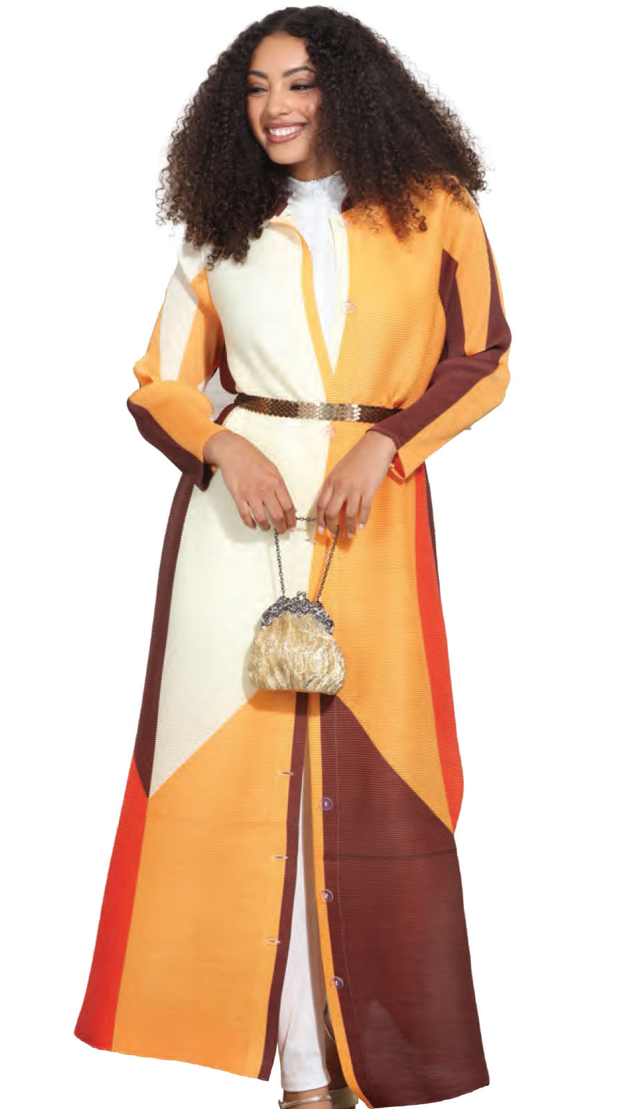 Introducing the Luxe Moda LM385 Outfit, a sartorial statement piece that exudes confidence and style. This outfit is a harmonious blend of bold color blocking and elegant design, offering a refreshing twist on the classic long-sleeve dress. The LM385 features an eye-catching palette of warm hues, including orange, yellow, and brown tones, that merge into a sophisticated piece perfect for any fashion-forward wardrobe.