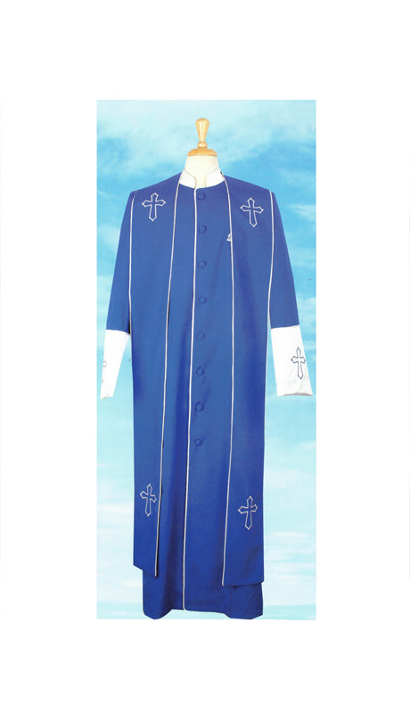 Constructed from a high-quality blend of fabrics, this robe is crafted for durability and ease of care, ensuring that it remains a key part of the vestments for years to come. Comfortable yet regal, the robe is designed to be worn for various ecclesiastical functions and religious gatherings. The Sapphire Collection Men's Church Robe 2-BLU is a reflection of both tradition and the contemporary needs of religious vestments. Its availability in various sizes ensures a fit that is both respectful and suited to the wearer's comfort.