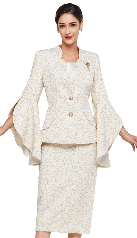 Introducing the Serafina 4030-GLD Church Suit, a testament to sophistication and timeless style. Designed with meticulous attention to detail, this ensemble features premium embroidered fabric that exudes luxury and grace. The elegant bell sleeve design adds dramatic flare to your movements and ensures you stand out with a classic yet bold statement.