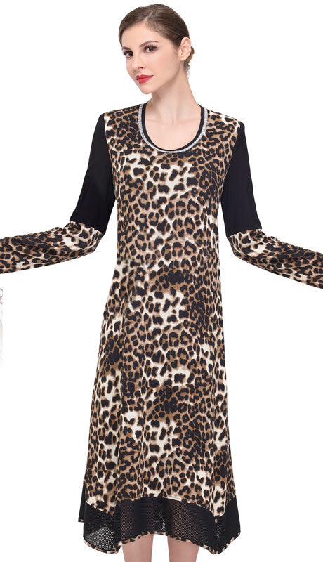 Introducing the Serafina 6187-BL Church Dress â the epitome of elegance and style for any woman who desires a chic yet modest ensemble. This exquisite dress harmoniously blends the boldness of leopard print with the sobriety of a church-appropriate attire, offering a perfect balance between bold and demure aesthetics.
