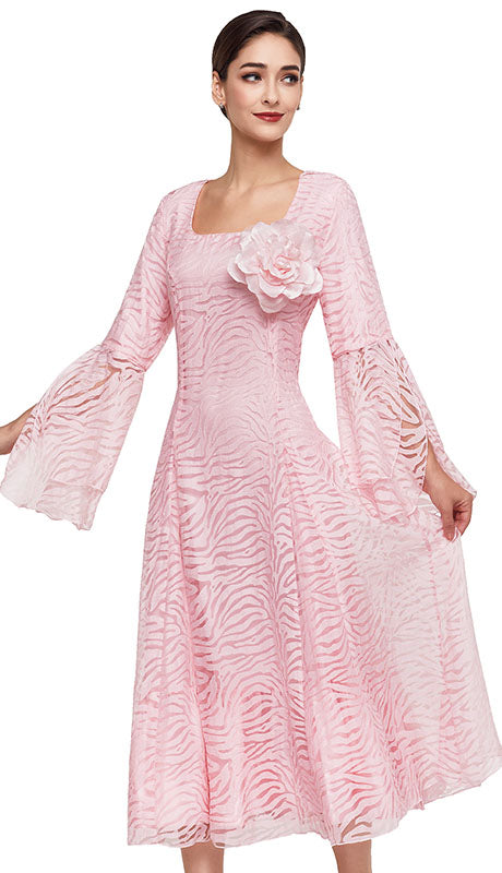 Introducing the Serafina 6206-PNK Ladies Church Dress, a garment that radiates sophistication and grace. This exquisite piece is crafted for those who appreciate a blend of traditional style with modern elegance. The dress features a distinctive mid-length cut, offering a versatile style that is perfect for various formal occasions, from church services to sophisticated gatherings.