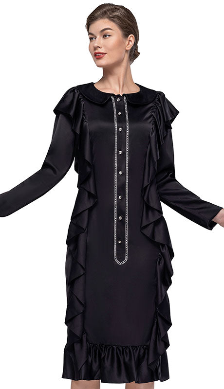The dress features a modest round neck and long sleeves, ensuring an elegant coverage suitable for any age and body type. The overall simplicity of the dress's design allows for versatile accessory pairings, making it an excellent canvas for personal style expression. While the dress is striking on its own, it pairs beautifully with various shoe styles and minimal jewelry, allowing for customization that reflects your individual taste. Whether attending a church service, wedding, or formal gathering, the Serafina 6437-BLK Church Dress is an unmatched choice that radiates dignity and style.