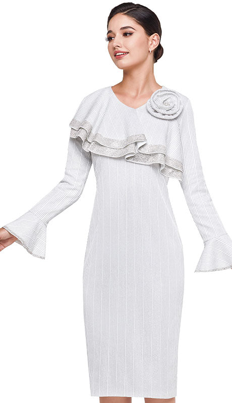 Additionally, the dress is complemented by a tasteful rosette accent, positioned just above the waist, which serves as a focal point and enhances the garment's overall femininity. Whether it's for Sunday service, a wedding, or a formal brunch, the Serafina 6442-WHT Church Dress is designed to make a statement of understated elegance. Its combination of a timeless cut and unique design details ensures that this piece will be a cherished addition to any discerning wardrobe.