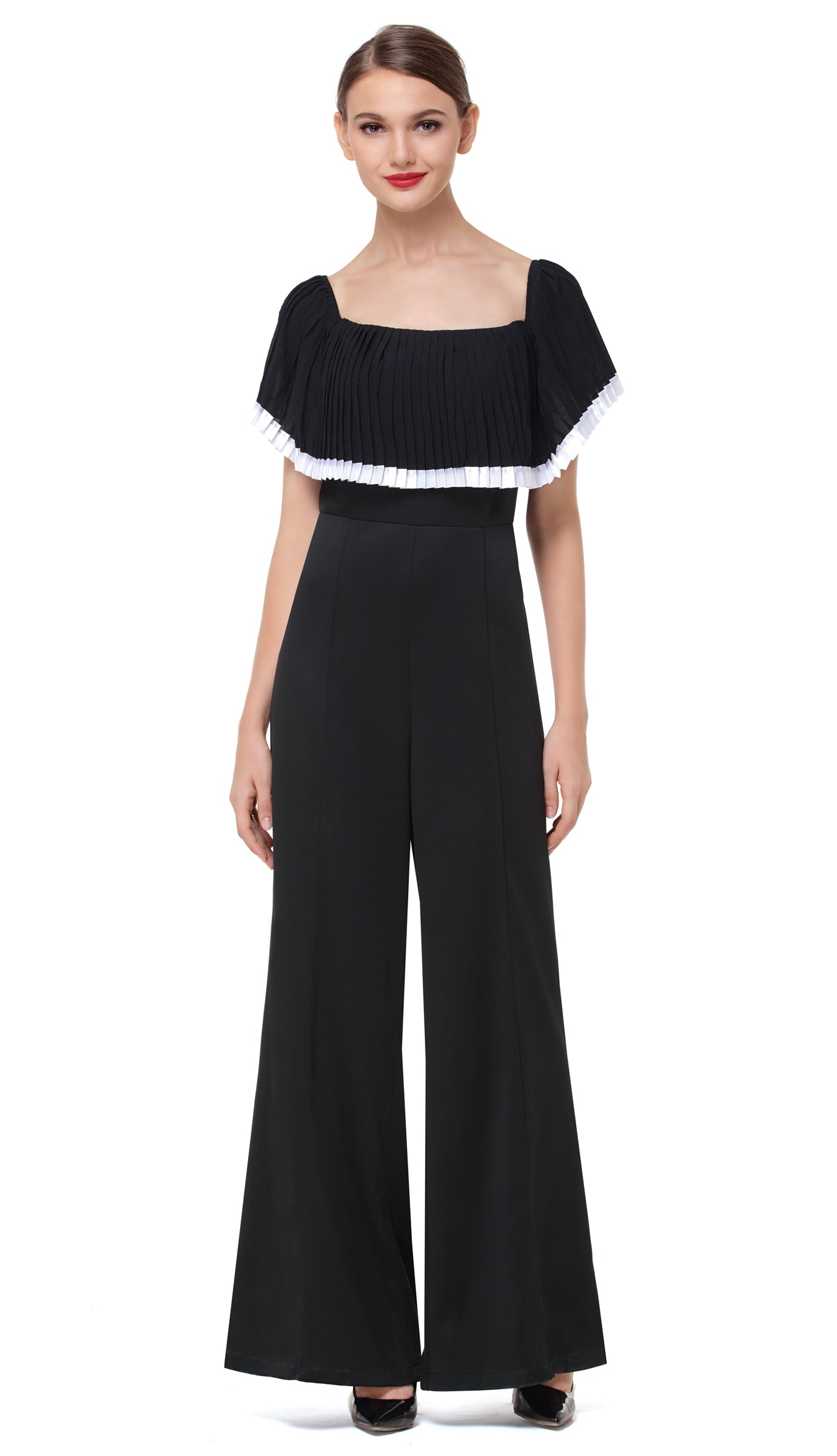 In addition to its stylistic features, the jumpsuit is versatile and easy to accessorize. Pair it with simple jewelry to let the outfit stand out, or add bold pieces to make an even grander statement. The Serafina 8451-BW is a testament to sophisticated design that merges classic charm with contemporary trends. With this jumpsuit in your collection, you'll have a go-to outfit that is sure to turn heads and highlight your sense of fashion and confidence.