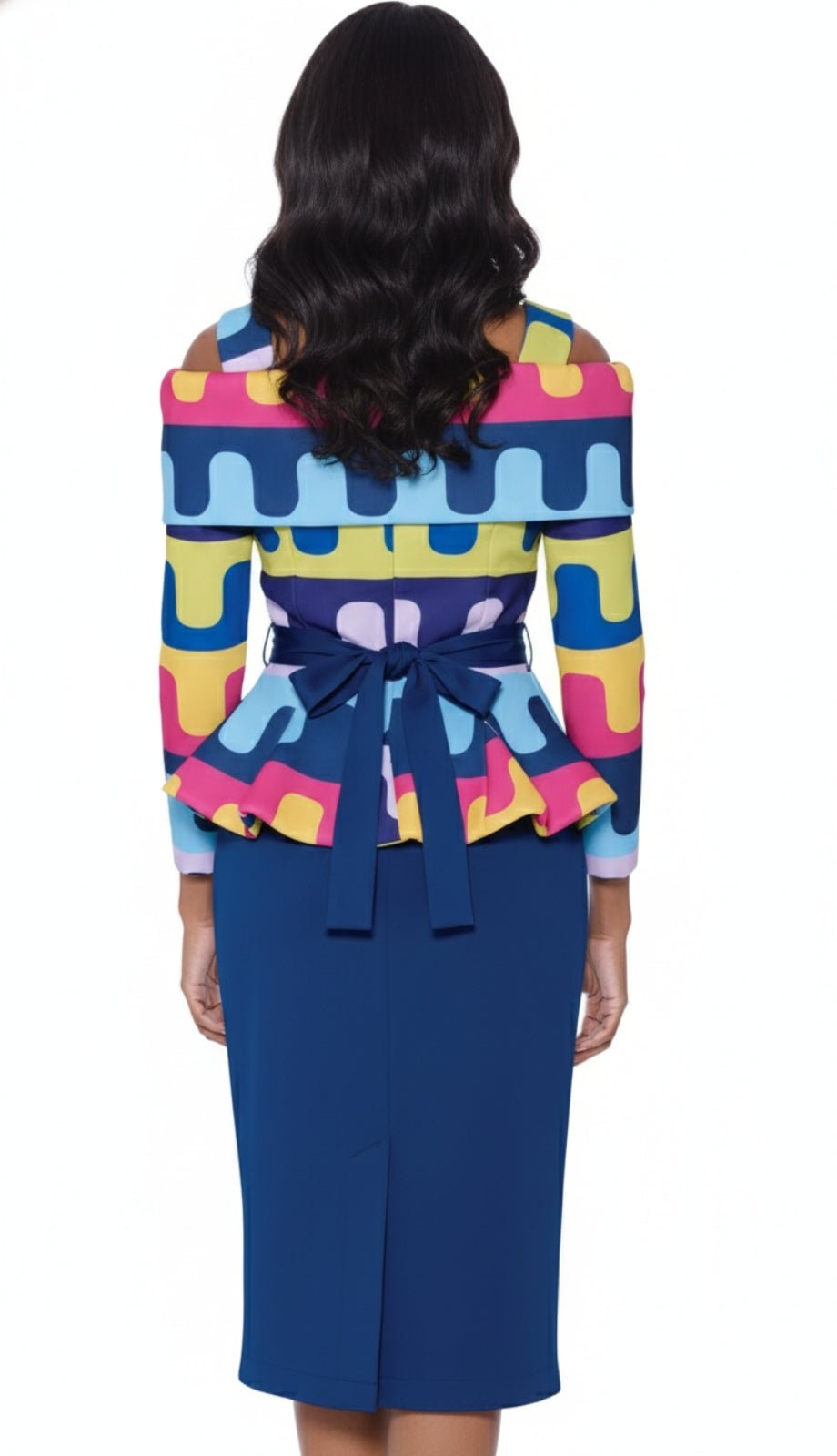 The Stellar Looks SL1902-RYL-IH Designer Church Suit is the epitome of elegance and sophistication. Crafted from high-quality fabric, this suit ensures both comfort and style, making it a perfect addition to any wardrobe. The unique design features a lovely peplum detail that flatters the silhouette, giving you a chic and polished appearance.