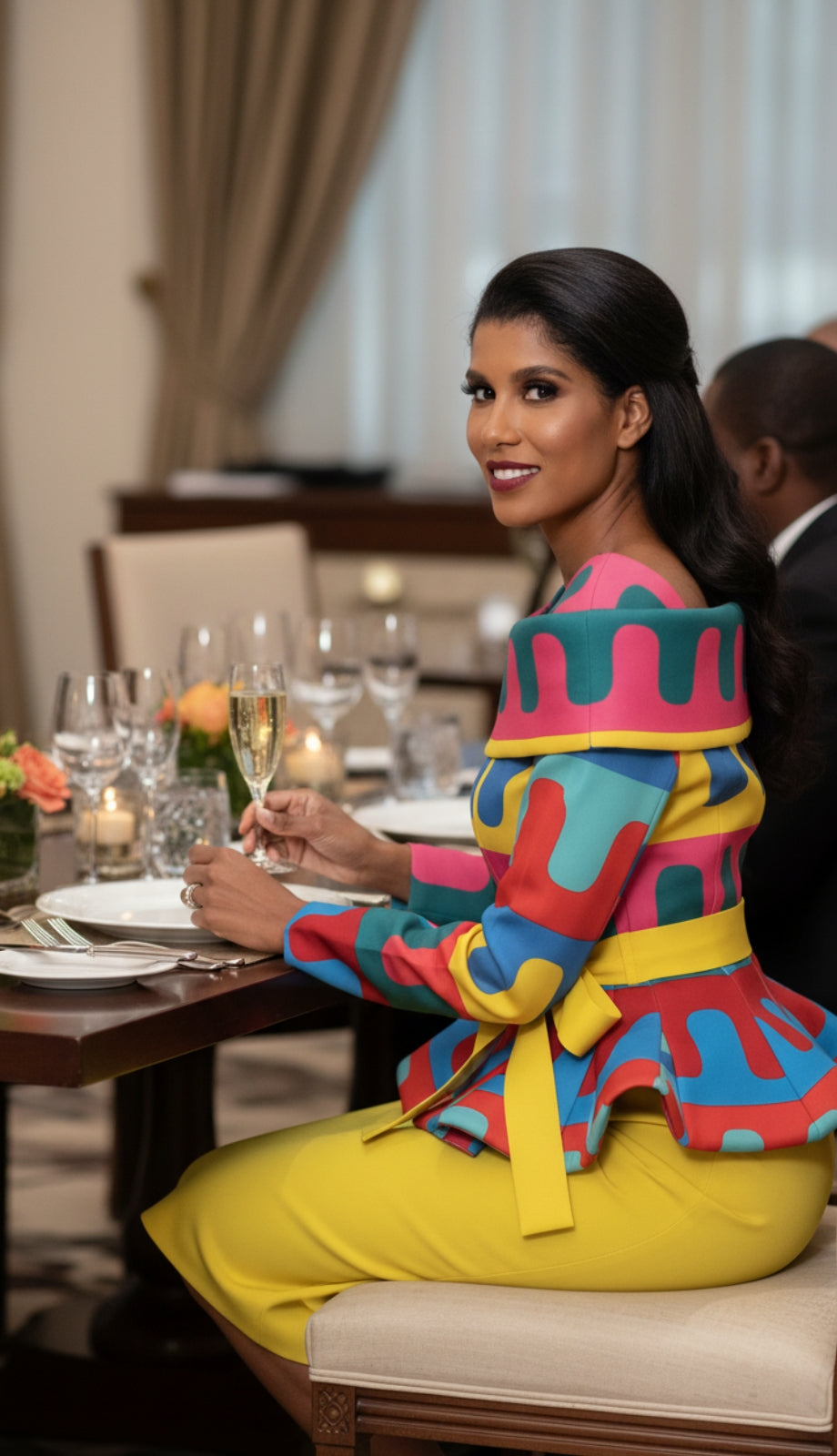 Featuring a tailored fit that beautifully enhances your silhouette, the suit is made with high-quality materials that ensure comfort throughout the day. The unique peplum waist adds a touch of elegance, while the statement sleeves elevate your look, making it suitable for both church gatherings and social events.