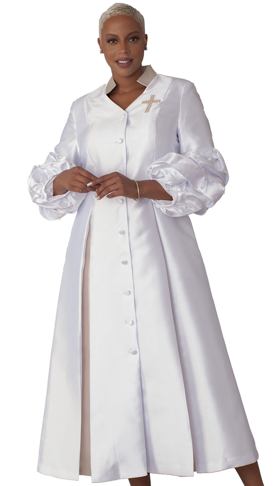This church robe features an elegant and timeless design that not only elevates your appearance but also complements the solemnity of religious gatherings. Its classic silhouette is tailored to enhance the grace and poise of the wearer, making it a perfect choice for ministers, choir members, and church officials alike.