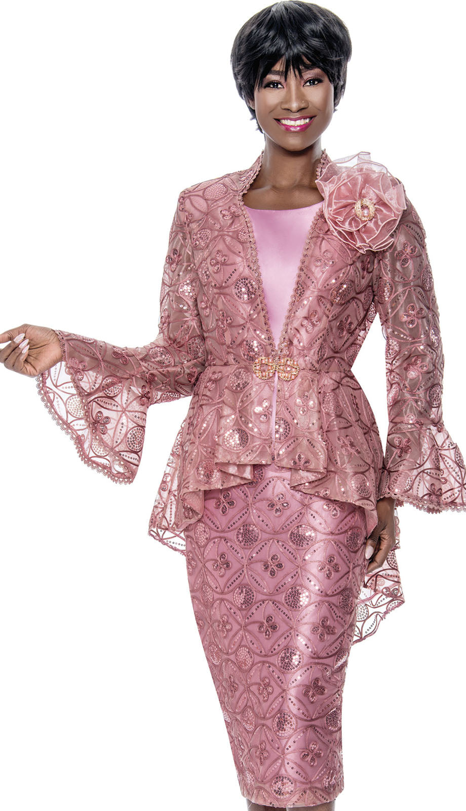 The Terramina 7184-MVE Church Suit is a distinguished creation designed for women who appreciate a blend of style, elegance, and comfort. This outfit makes a statement at any church service or special event, striking the perfect balance between modesty and style. Intricate embroidery embellished with rhinestones adorns the suit, giving it a luxurious touch that stands out in any crowd.