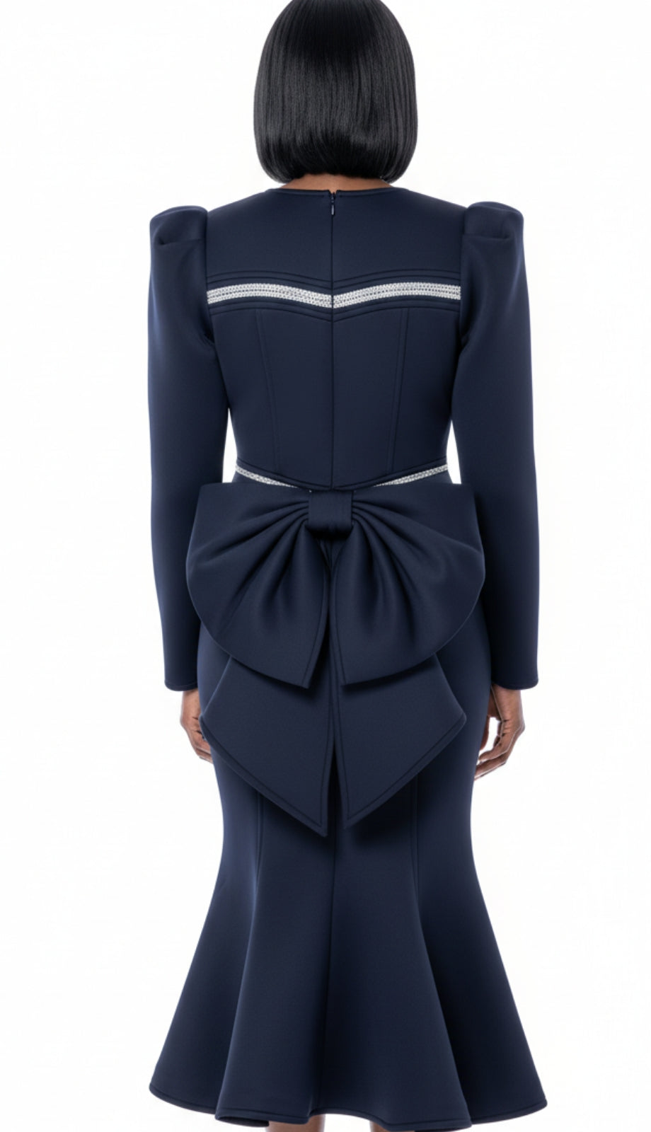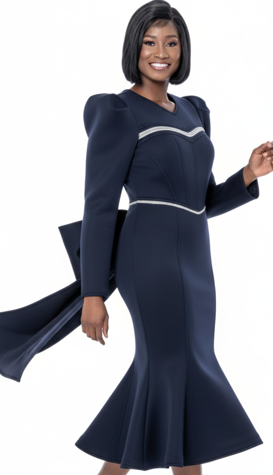 The Terramina 7282-NVY dress is the epitome of elegance and sophistication. Crafted from high-quality materials, this stunning navy dress features a flattering silhouette that hugs the body in all the right places while providing comfort and style. The distinctive design includes bold puff sleeves that add a dramatic flair, making it perfect for special occasions such as weddings, parties, or formal events.