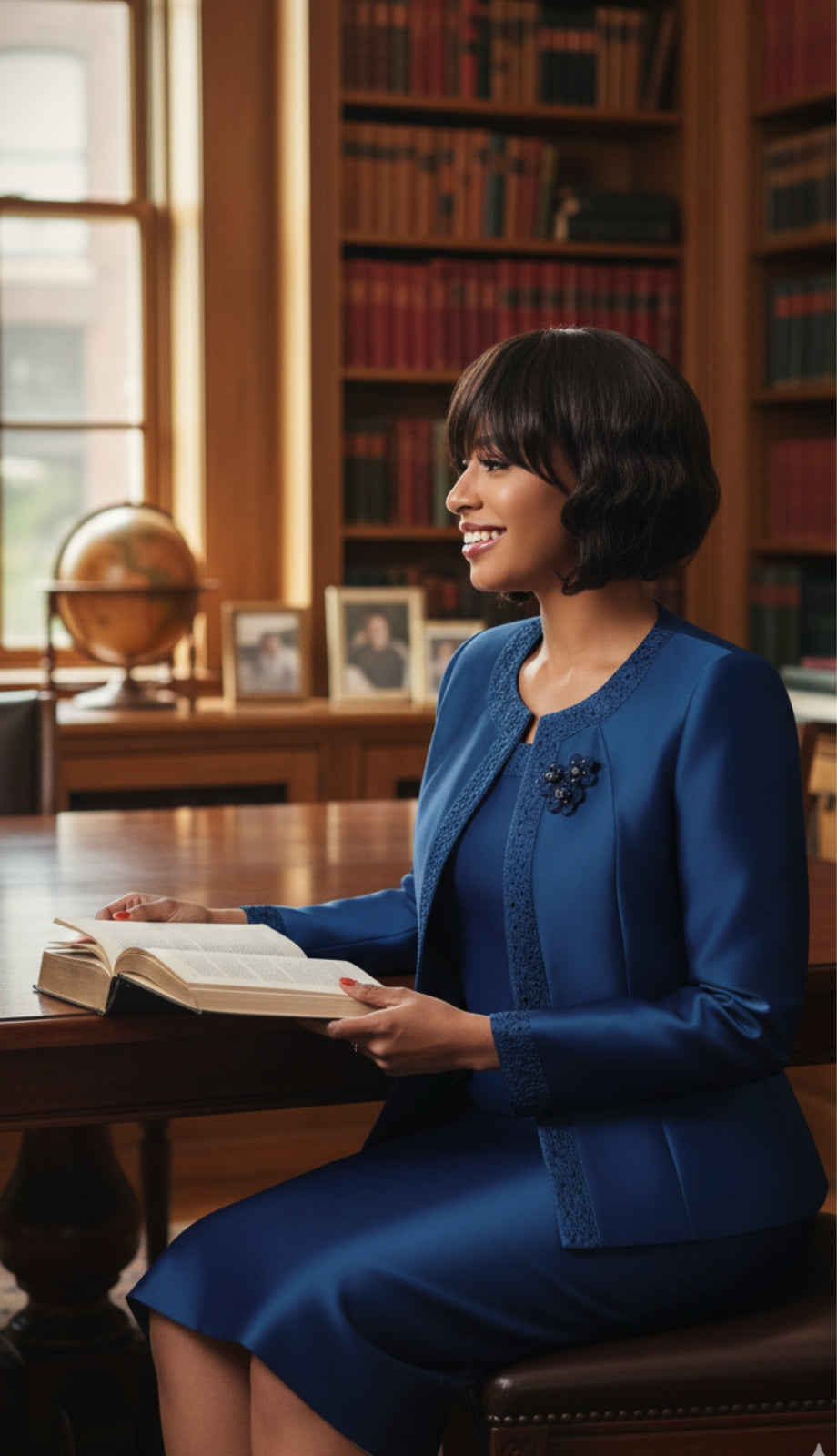 Moving to the knee-length skirt, it complements the jacket perfectly, creating a seamless and well-put-together appearance. The skirt allows for ease of movement, while maintaining a structured and flattering form. Whether you're attending a church service, participating in a choir, or stepping out for a special brunch, the Terramina 7637-NVY Church Suit promises to keep you comfortable and stylish. Embrace the timeless appeal of this beautiful ensemble that gracefully combines traditional style with modern sophistication.