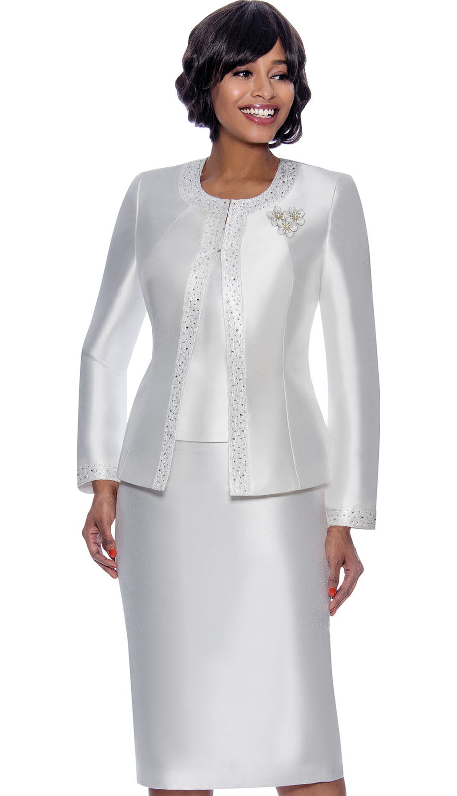 The Terramina 7637-WHT Church Suit represents the epitome of elegance and sophistication for any formal occasion. Meticulously crafted, this two-piece ensemble consists of a beautifully tailored jacket and a sleek fitted skirt, making it the perfect addition to any wardrobe. The suit is available in a pristine white shade which exudes grace and purity, appropriate for various events beyond church services, including weddings, christenings, and religious celebrations.