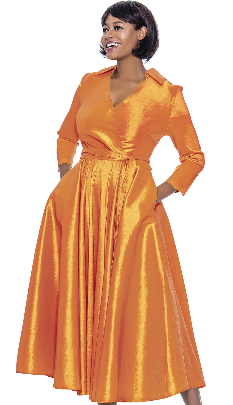 At the waist, this suit boasts a pleated detail that not only enhances the richness of the satin fabric but also accentuates the waistline in a flattering manner. The pleats cascade down into a flowing A-line skirt, creating a beautiful, voluminous effect that offers both comfort and style. Whether attending a church service, a wedding, or any other dignified event, the Terramina 7869-ORG Church Suit is sure to make a lasting impression. It's a versatile piece that offers endless sophistication to any woman's ensemble.